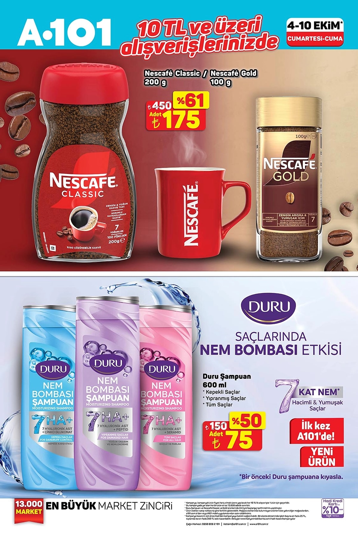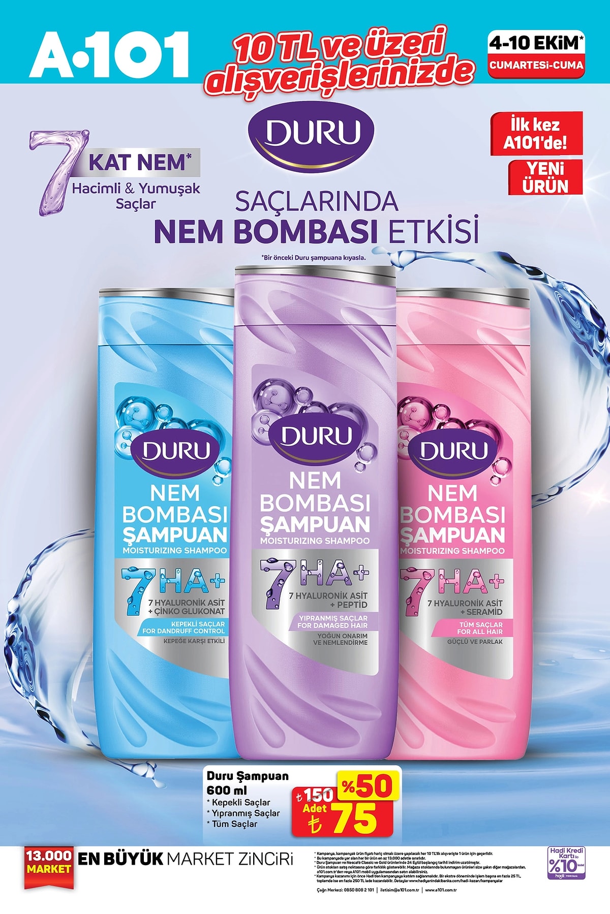 10 TL ve üzeri alışverişlerde Duru Şampuan 600 ml 75 TL, ikinci üründe %50 indirim