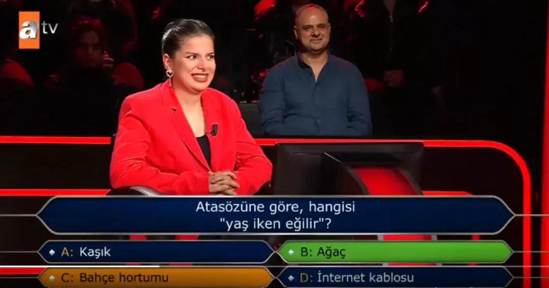 Yarışmaya katılan Ceyda Işıkal, ilk soruda “Atasözüne göre hangisi ‘yaş iken eğilir?’” sorusuyla karşılaştı.