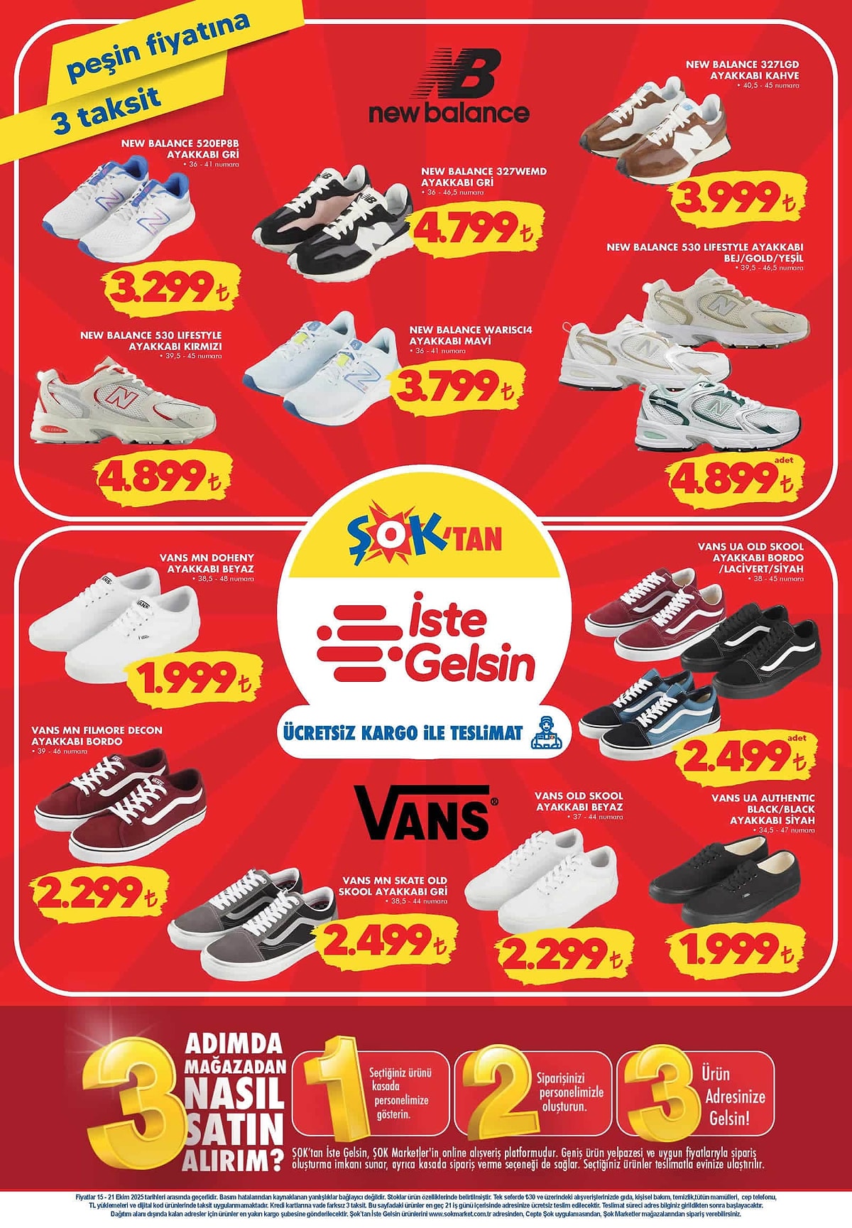 15-21 Ekim 2025 tarihleri arasında geçerli olacak kampanyada, bu kez New Balance ve Vans gibi dünya markaları da ŞOK raflarında yerini alıyor. Spor tutkunları için hazırlanan bu özel ürünler, sınırlı stokla satışa sunulacak.